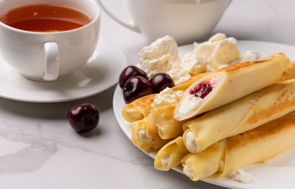 Млинці з солодким сиром та вишнею