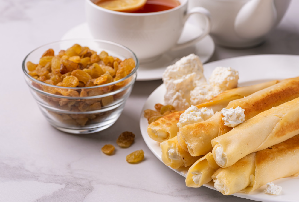 Млинці з сиром солодким та родзинками