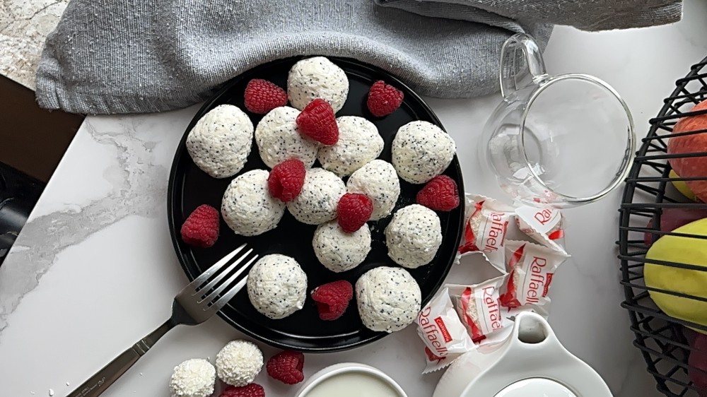 Ліниві вареники з кокосом та малиною
